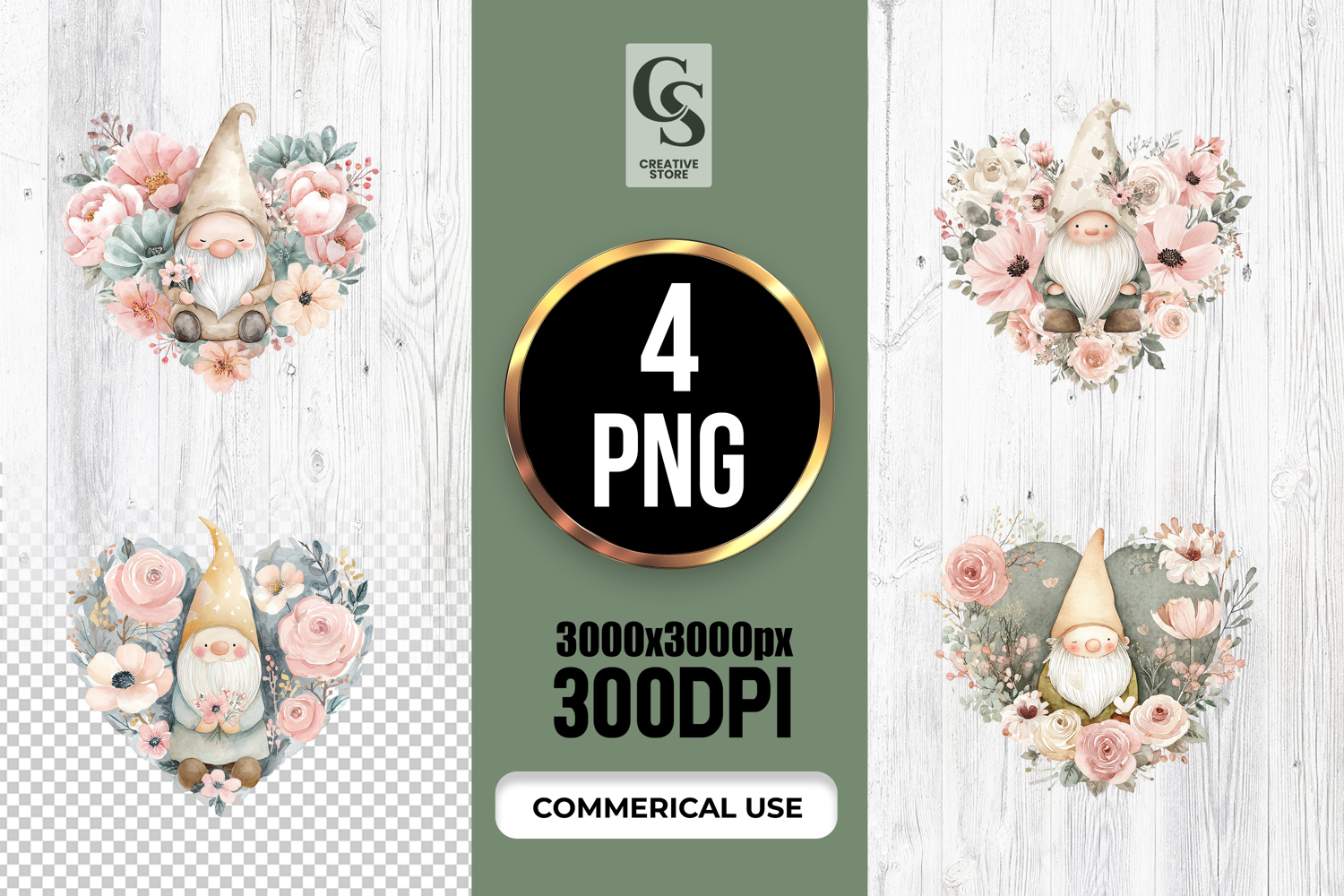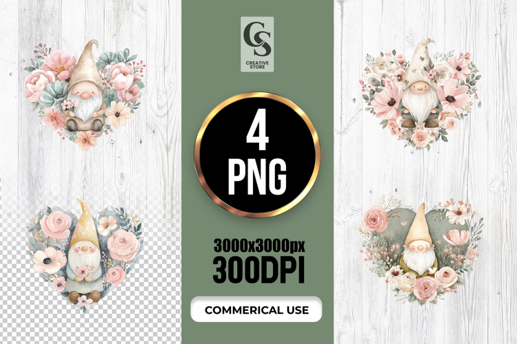 4 Cute Floral Gnome Watercolor Clipart Sublimation PNG Files Perfect for Greeting Cards, Invitations, Junk Journal, Party Decor, Scrapbooking and many other craft projects.