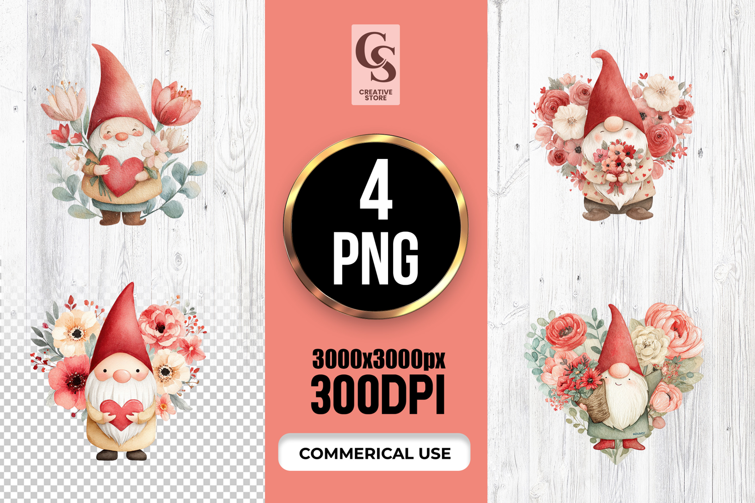 4 Valentine Gnome With Flowers Watercolor Clipart PNG  Files Perfect for Greeting Cards, Invitations, Junk Journal, Party Decor, Scrapbooking and many other craft projects.