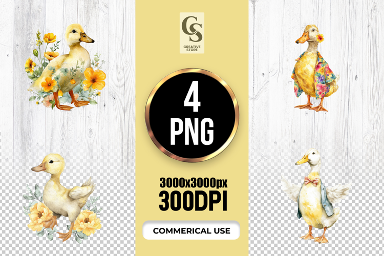 4 Cute Duck Watercolor Clipart Sublimation PNG Files Perfect for Greeting Cards, Invitations, Junk Journal, Party Decor, Scrapbooking and many other craft projects.
