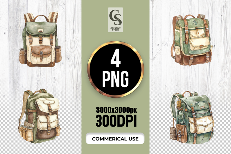4 Watercolor Hiking Backpack Clipart Sublimation PNG Files Perfect for Greeting Cards, Invitations, Junk Journal, Party Decor, Scrapbooking and many other craft projects.