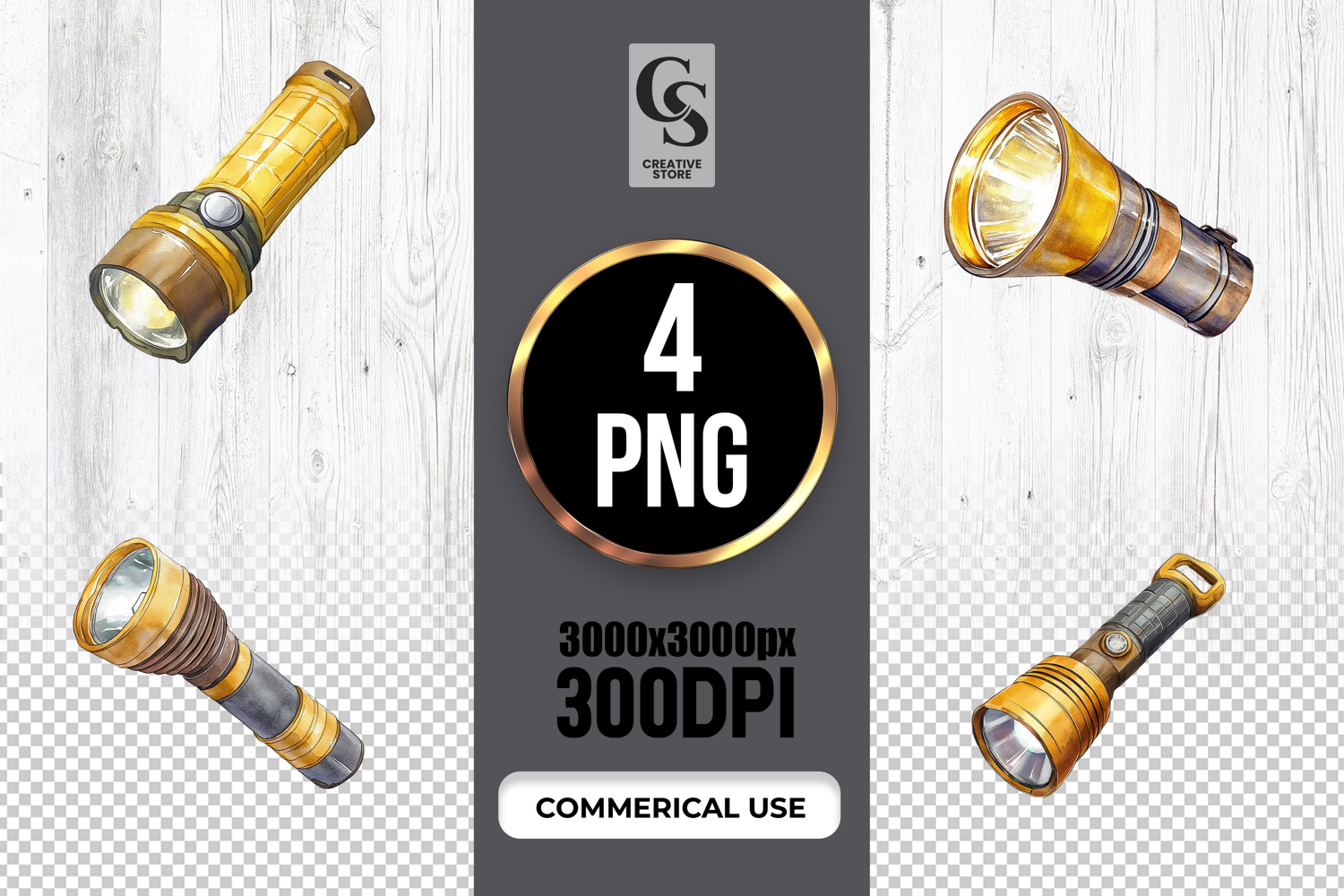 4 Watercolor Flashlight Clipart PNG Files Perfect for Greeting Cards, Invitations, Junk Journal, Party Decor, Scrapbooking and many other craft projects.