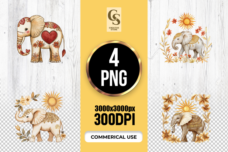 4 Cute Elephant Watercolor Illustration Clipart PNG Files Perfect for Greeting Cards, Invitations, Junk Journal, Party Decor, Scrapbooking and many other craft projects.