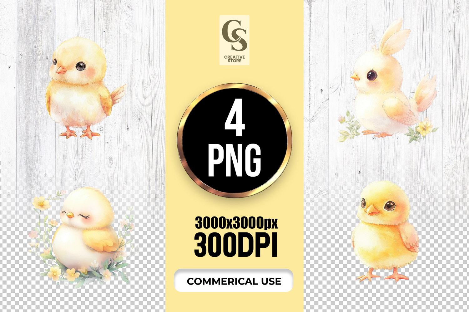 4 Cute Baby Chick Watercolor Clipart Sublimation PNG Files Perfect for Greeting Cards, Invitations, Junk Journal, Party Decor, Scrapbooking and many other craft projects.