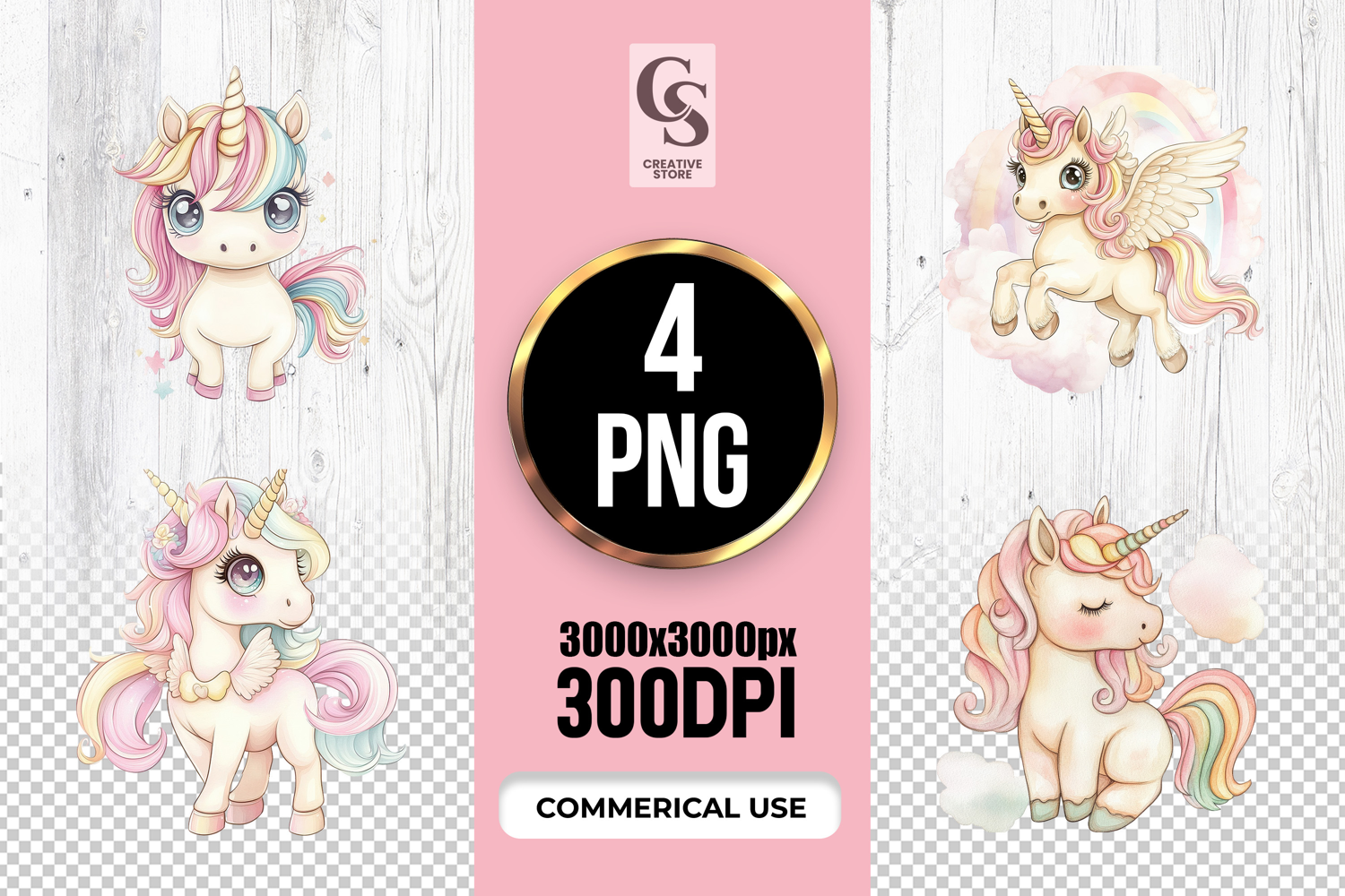 4 Cute Unicorn Watercolor Clipart Sublimation PNG Files Perfect for Greeting Cards, Invitations, Junk Journal, Party Decor, Scrapbooking and many other craft projects.