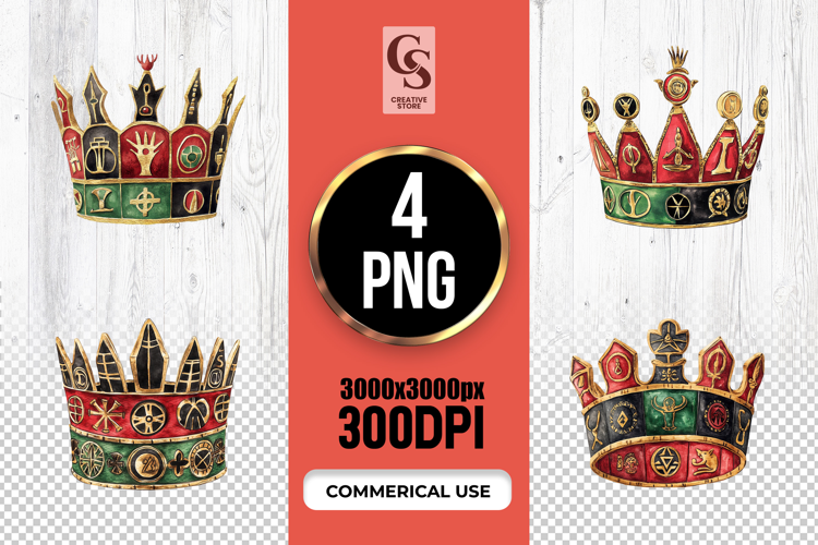 4 Kwanzaa Royal Crown Watercolor Clipart Sublimation PNG Files Perfect for Greeting Cards, Invitations, Junk Journal, Party Decor, Scrapbooking and many other craft projects.