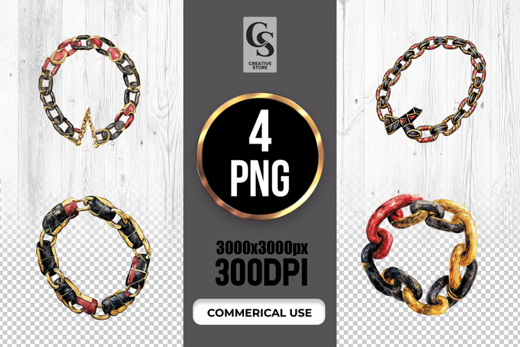 Commercial Use Png Fashion Accessory Clipart Chain Bracelet Png Watercolor Chain Clipart Chunky Chain Bracelet Gold Black Red Chain Jewelry Clipart Png Bracelet Sublimation Design Handmade Jewelry Png Printable Clipart Bundle
