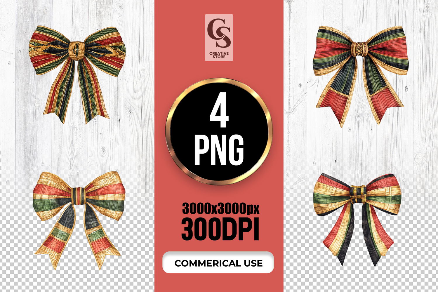 4 Kwanzaa Ribbon Bow Clipart PNG Files Perfect for Greeting Cards, Invitations, Junk Journal, Party Decor, Scrapbooking and many other craft projects.