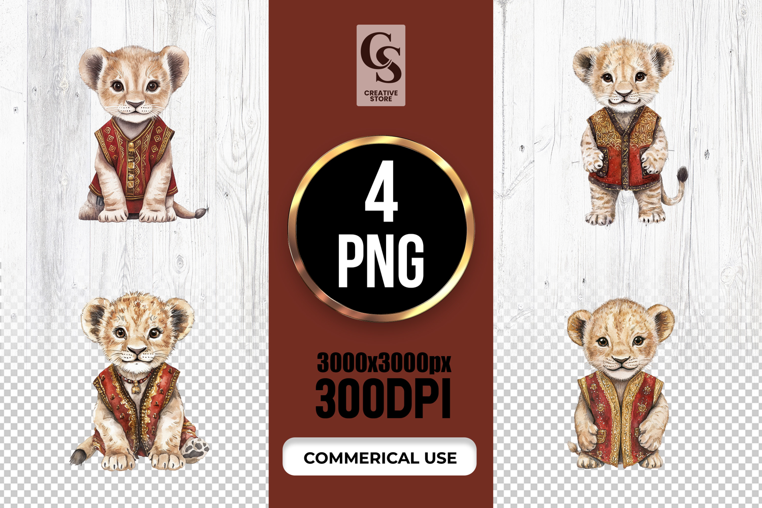 4 Watercolor Lion Cub Clipart PNG Files Perfect for Greeting Cards, Invitations, Junk Journal, Party Decor, Scrapbooking and many other craft projects.