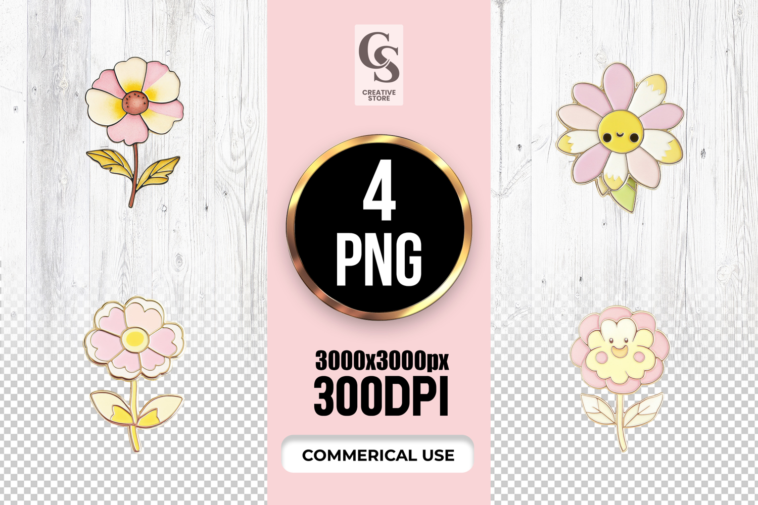 4 Cute Pastel Flower Illustration Clipart Sublimation PNG Files Perfect for Greeting Cards, Invitations, Junk Journal, Party Decor, Scrapbooking and many other craft projects.