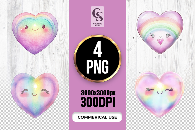 4 Cute Rainbow Heart Illustration Clipart Sublimation PNG Files Perfect for Greeting Cards, Invitations, Junk Journal, Party Decor, Scrapbooking and many other craft projects.