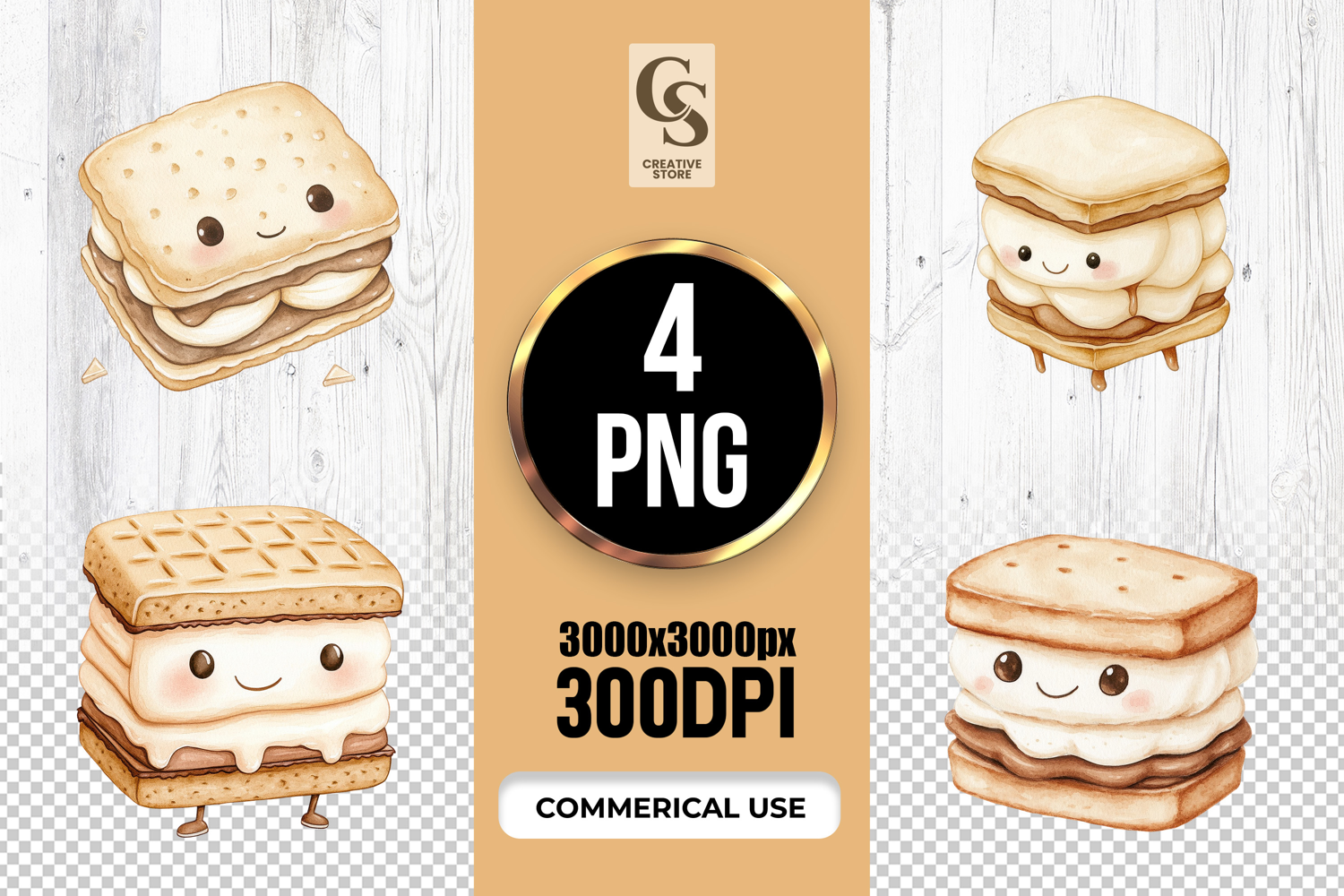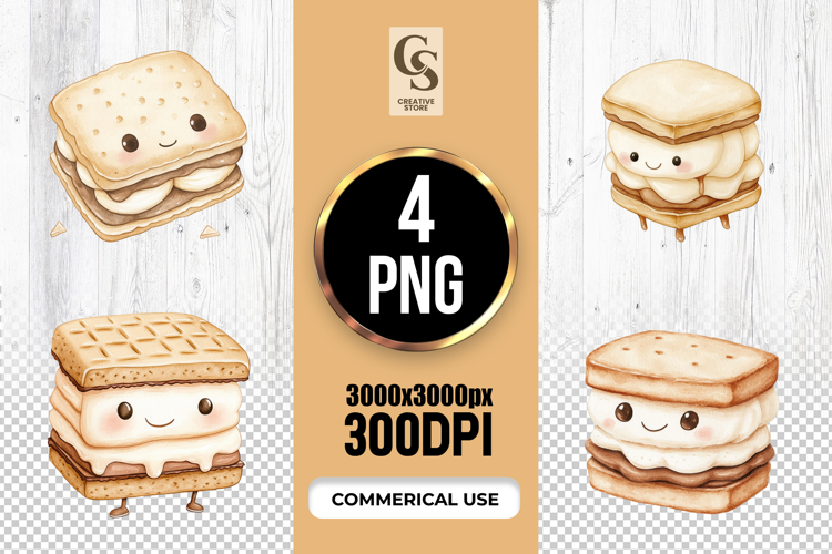 4 Cute S’mores Character Illustration Clipart Sublimation PNG Files Perfect for Greeting Cards, Invitations, Junk Journal, Party Decor, Scrapbooking and many other craft projects.