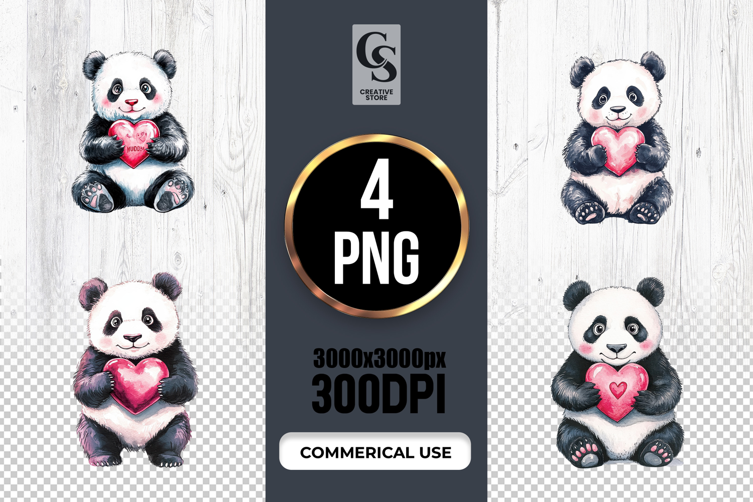 4 Cute Panda Holding Heart Illustration Clipart PNG Files Perfect for Greeting Cards, Invitations, Junk Journal, Party Decor, Scrapbooking and many other craft projects.