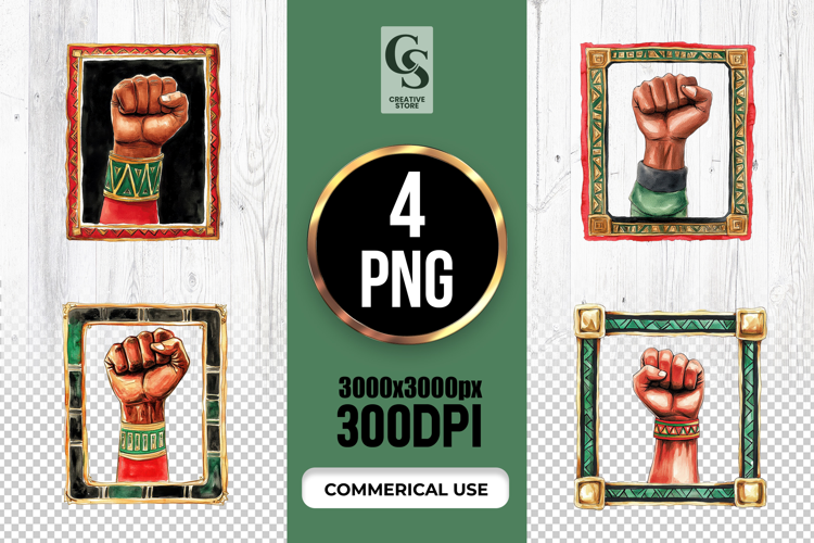 4 Framed Raised Fist Illustration Clipart Sublimation PNG Files Perfect for Greeting Cards, Invitations, Junk Journal, Party Decor, Scrapbooking and many other craft projects.