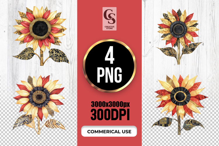 4 Boho Sunflower Watercolor Floral Clipart Sublimation PNG Files Perfect for Greeting Cards, Invitations, Junk Journal, Party Decor, Scrapbooking and many other craft projects.