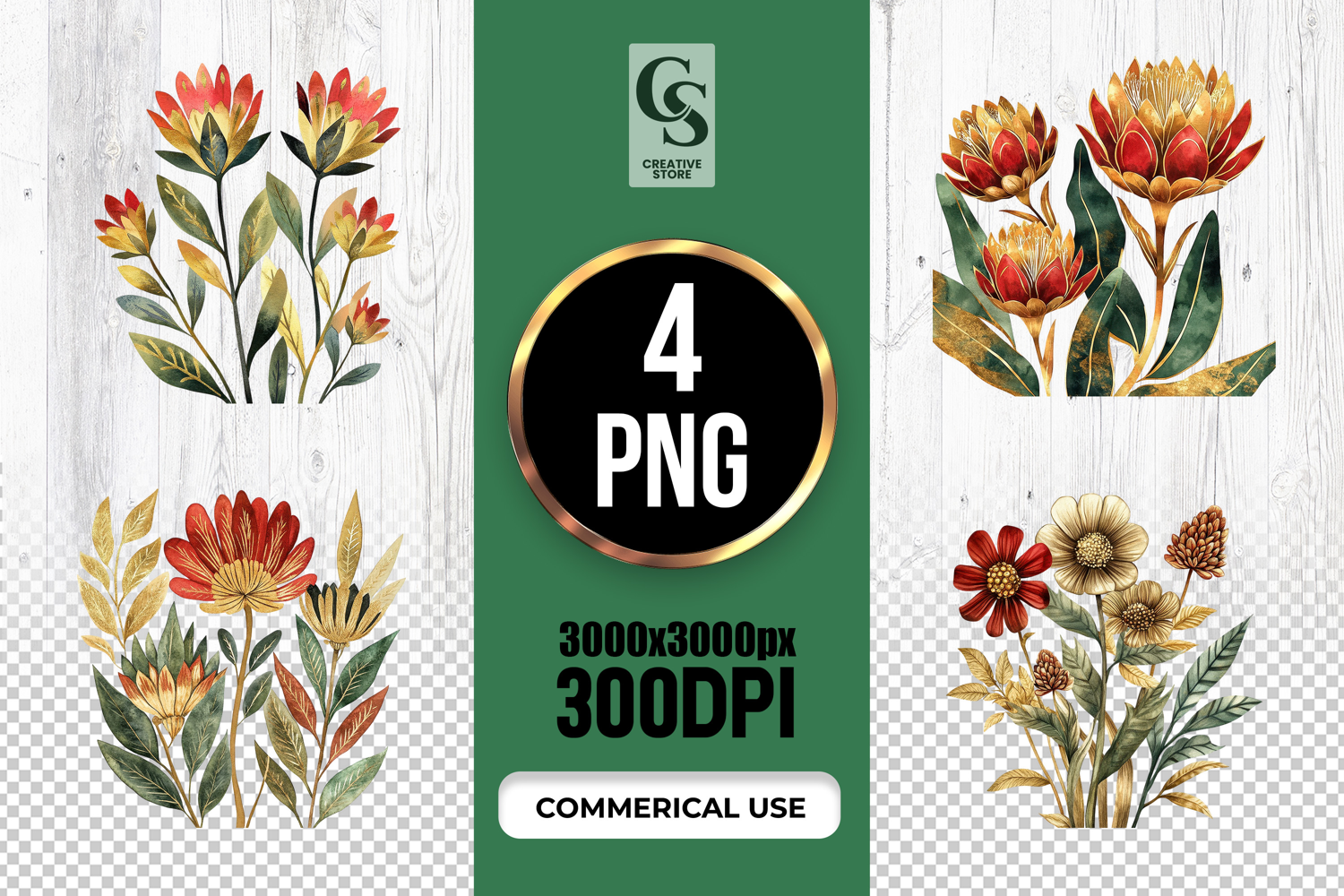 4 Boho Wildflower Botanical Watercolor Clipart Sublimation PNG Files Perfect for Greeting Cards, Invitations, Junk Journal, Party Decor, Scrapbooking and many other craft projects.