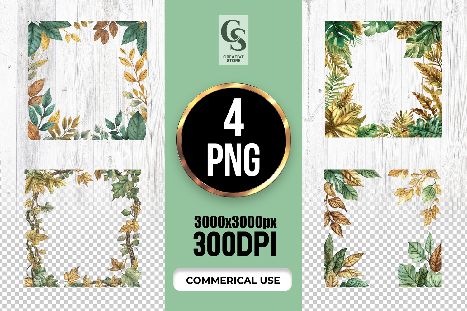 4 Watercolor Leaf Frame Botanical Border Clipart PNG Files Perfect for Greeting Cards, Invitations, Junk Journal, Party Decor, Scrapbooking and many other craft projects.