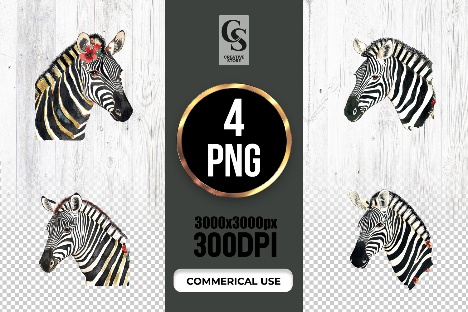 4 Zebra Head Watercolor Safari Animal Clipart Sublimation PNG Files Perfect for Greeting Cards, Invitations, Junk Journal, Party Decor, Scrapbooking and many other craft projects.