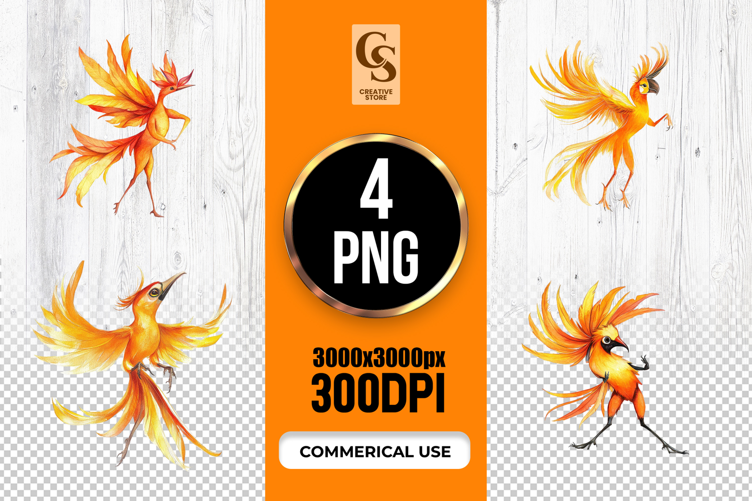 4 Watercolor Phoenix Bird Clipart Sublimation PNG Files Perfect for Greeting Cards, Invitations, Junk Journal, Party Decor, Scrapbooking and many other craft projects.
