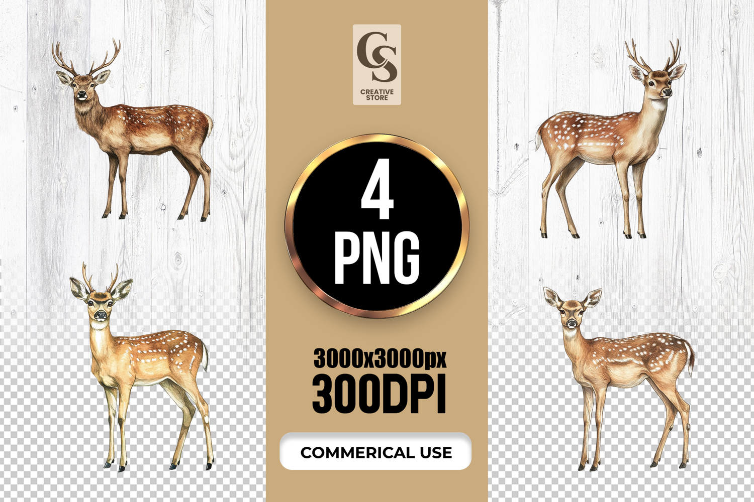 4 Watercolor Fallow Deer Clipart Sublimation PNG Files Perfect for Greeting Cards, Invitations, Junk Journal, Party Decor, Scrapbooking and many other craft projects.