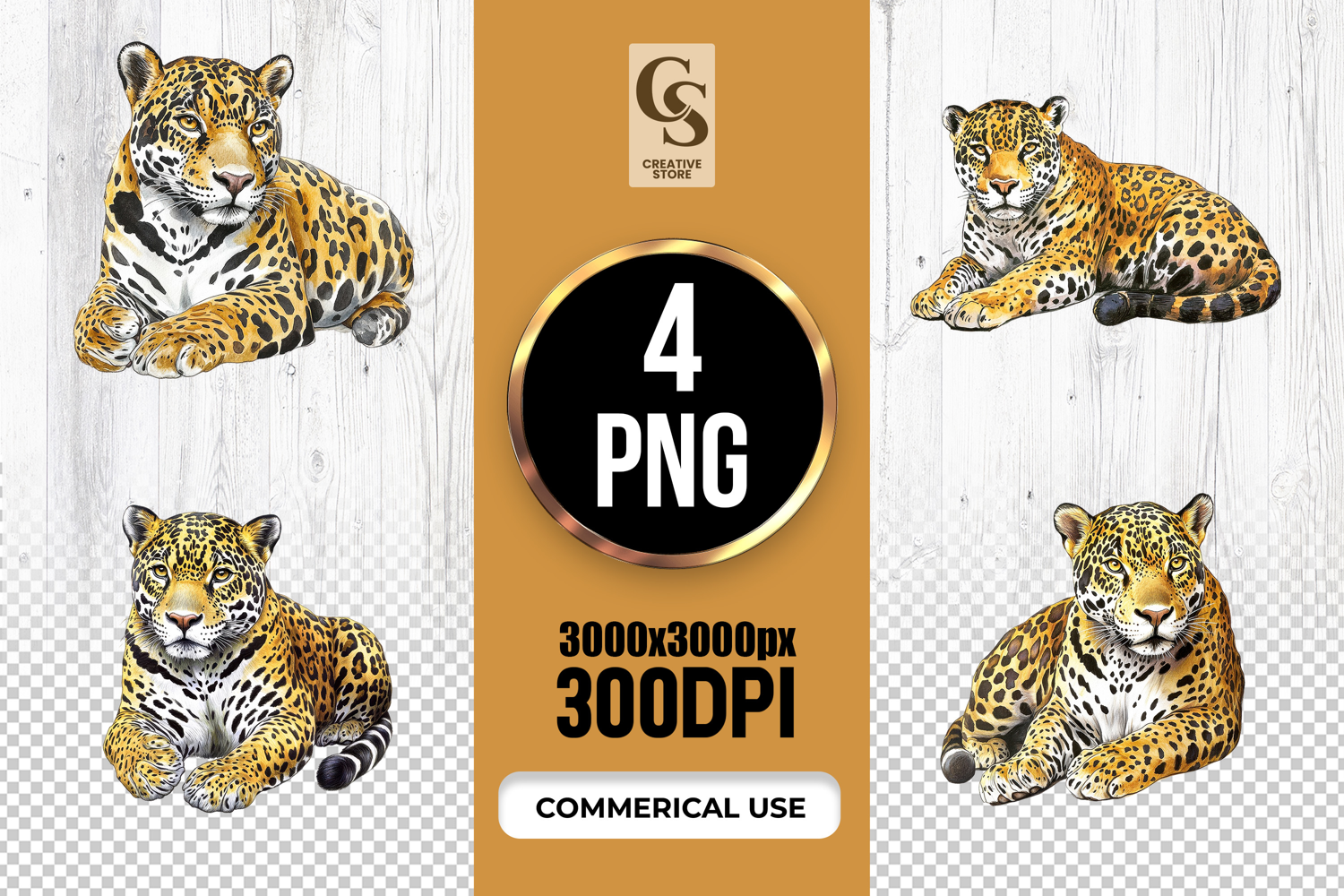 4 Watercolor Jaguar Big Cat Clipart Sublimation PNG Files Perfect for Greeting Cards, Invitations, Junk Journal, Party Decor, Scrapbooking and many other craft projects.