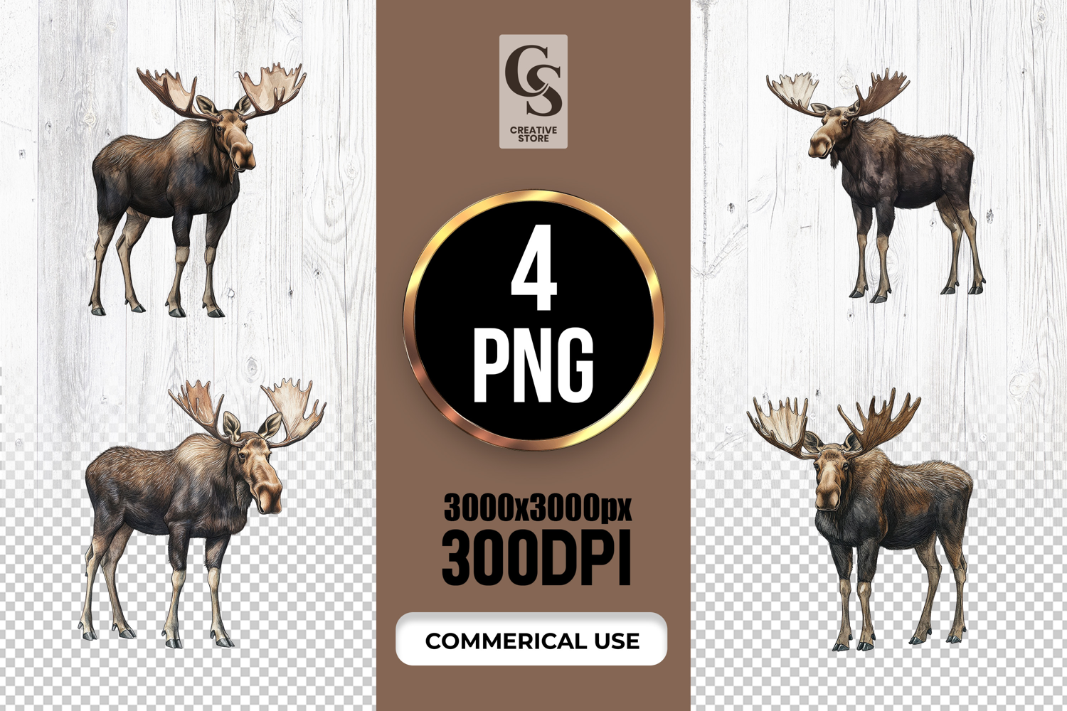 4 Moose Illustration Clipart Sublimation PNG Files Perfect for Greeting Cards, Invitations, Junk Journal, Party Decor, Scrapbooking and many other craft projects.