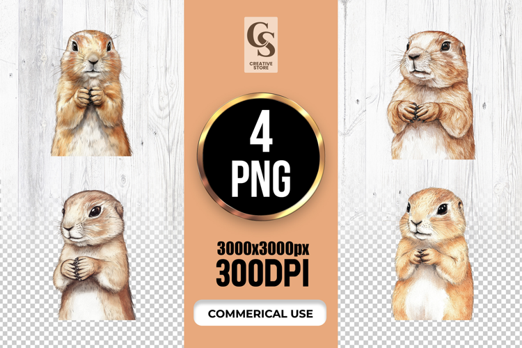 4 Watercolor Prairie Dog Illustration Clipart Sublimation PNG Files Perfect for Greeting Cards, Invitations, Junk Journal, Party Decor, Scrapbooking and many other craft projects.