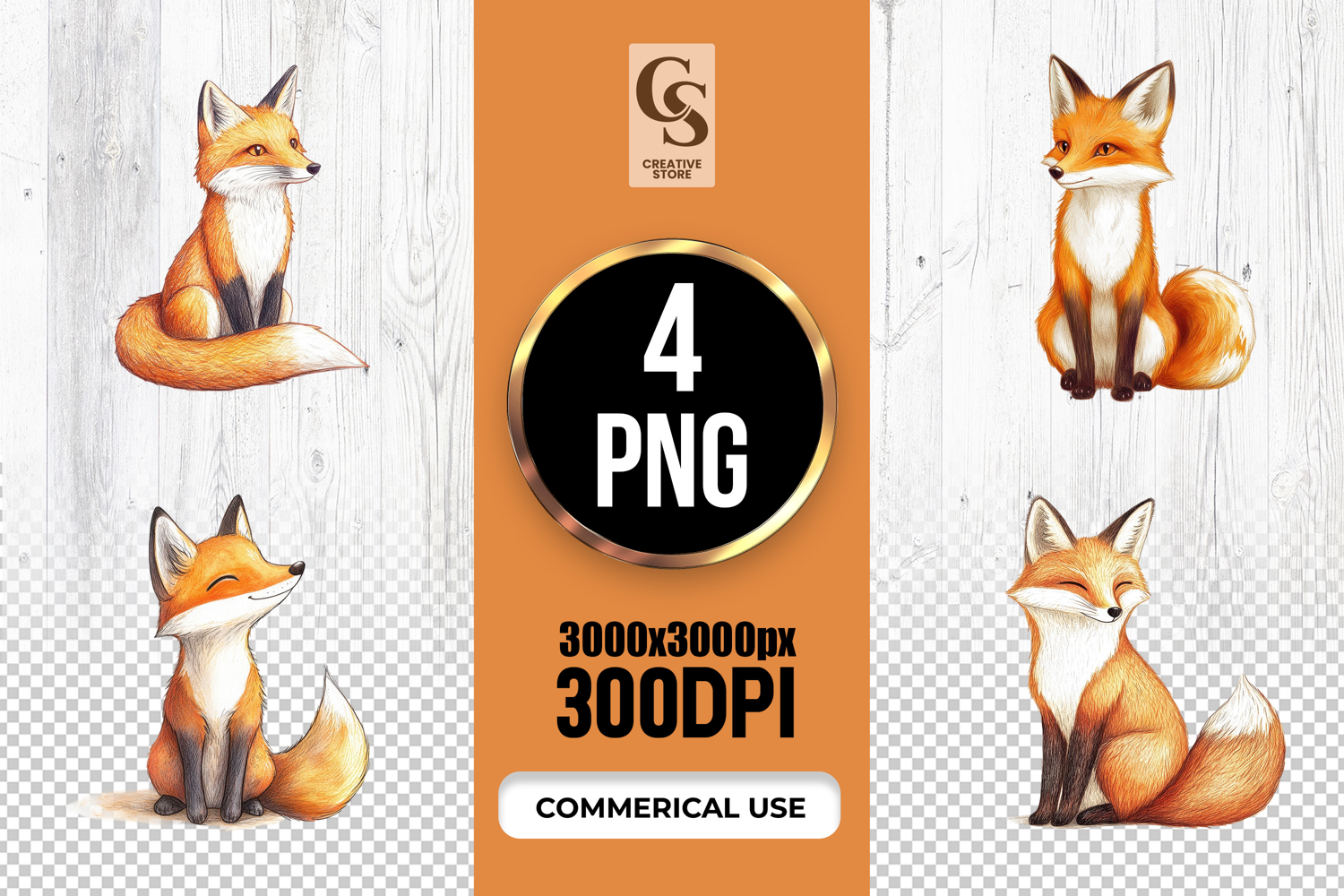 4 Cute Fox Watercolor Clipart Sublimation PNG Files Perfect for Greeting Cards, Invitations, Junk Journal, Party Decor, Scrapbooking and many other craft projects.