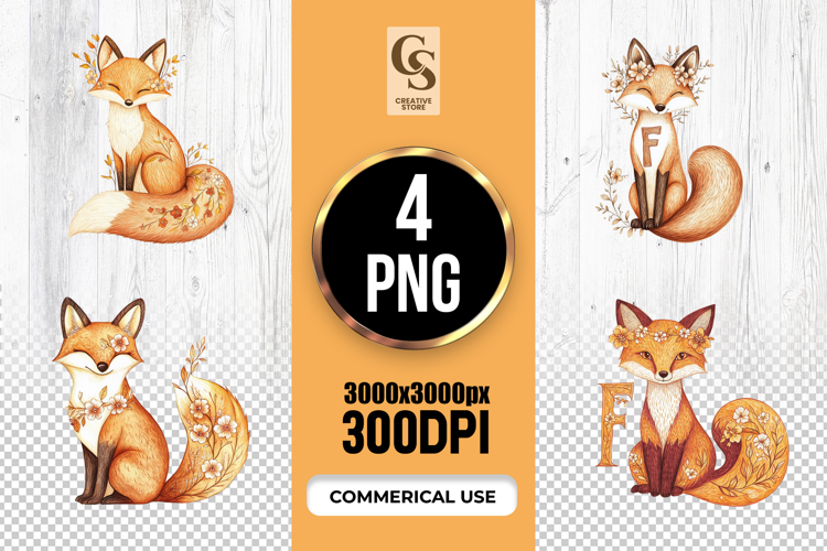 4 F Fox Floral Alphabet Letter Clipart Sublimation PNG Files Perfect for Greeting Cards, Invitations, Junk Journal, Party Decor, Scrapbooking and many other craft projects.
