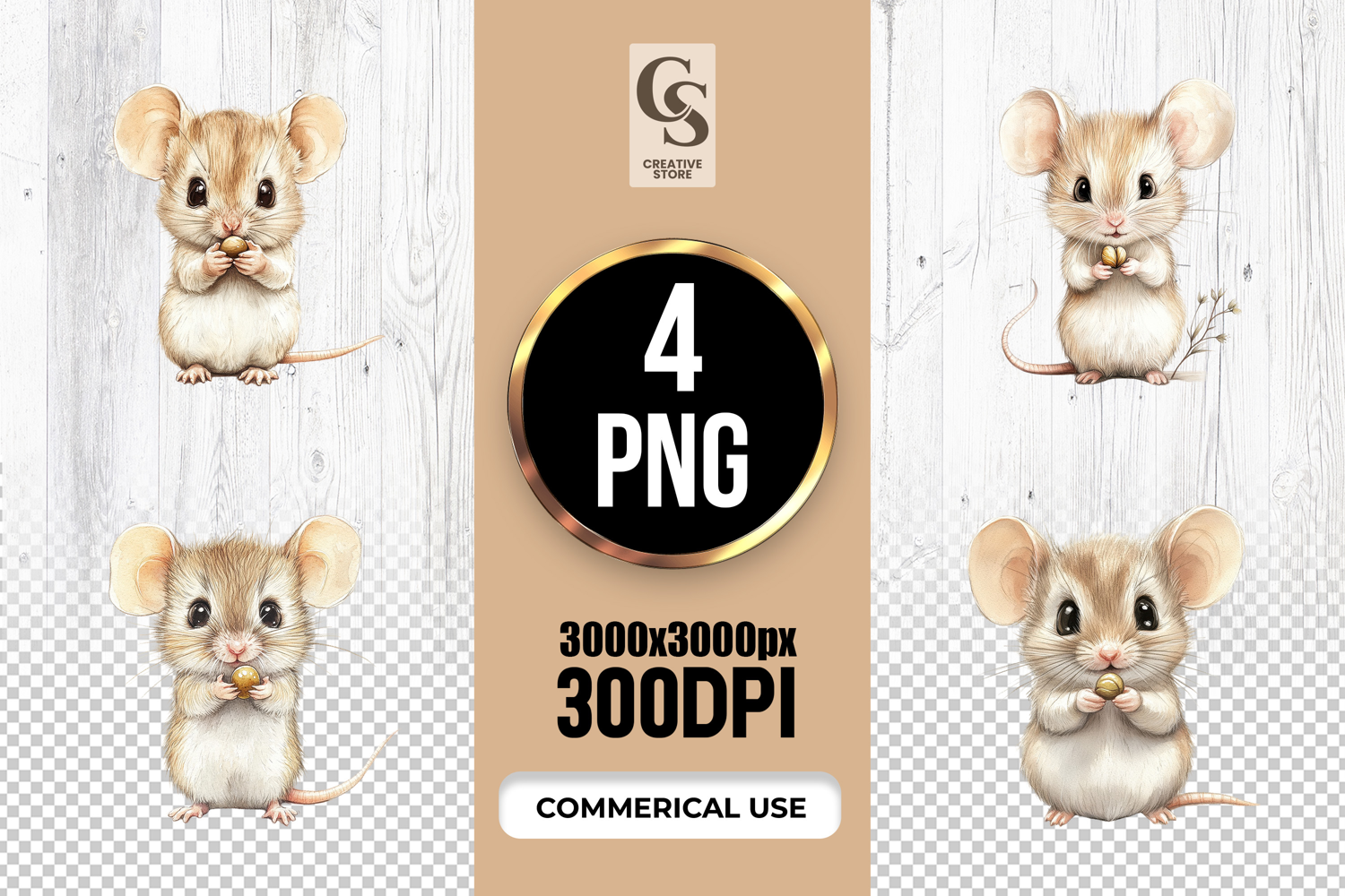 4 Watercolor Baby Mouse Clipart Sublimation PNG Files Perfect for Greeting Cards, Invitations, Junk Journal, Party Decor, Scrapbooking and many other craft projects.
