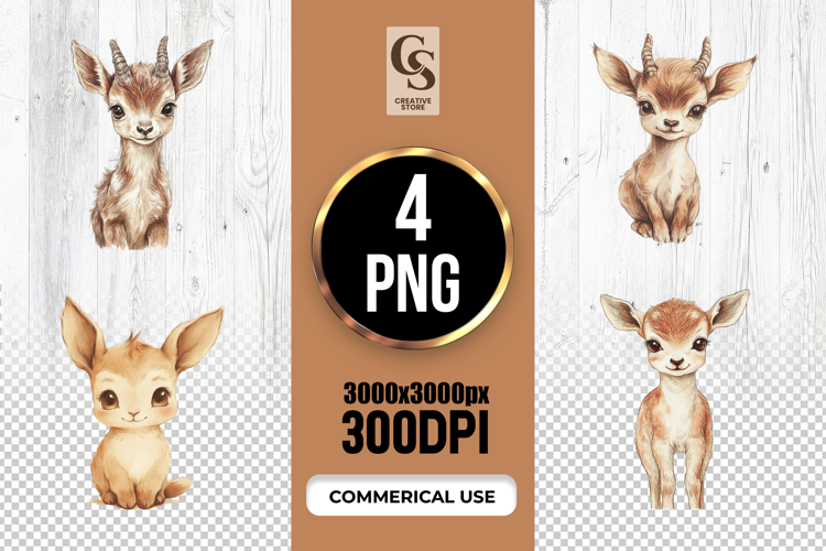 4 Cute Baby Deer Watercolor PNG Clipart Files Perfect for Greeting Cards, Invitations, Junk Journal, Party Decor, Scrapbooking and many other craft projects.