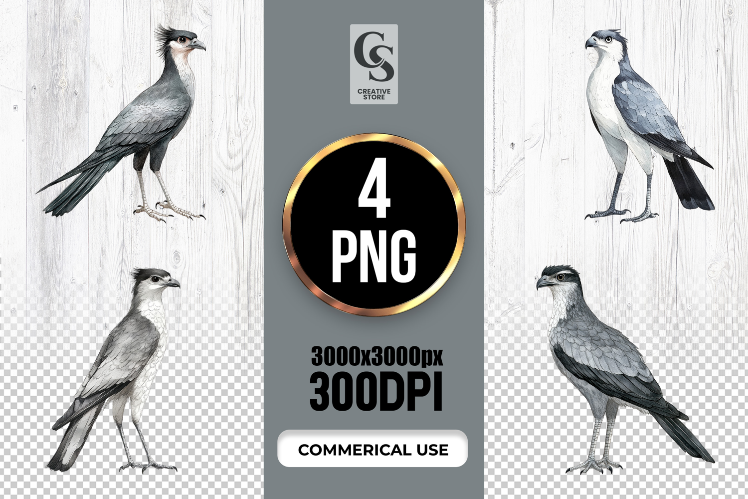 4 Watercolor Secretary Bird Illustration Clipart PNG Files Perfect for Greeting Cards, Invitations, Junk Journal, Party Decor, Scrapbooking and many other craft projects.