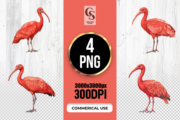 4 Watercolor Scarlet Ibis Illustration Clipart Sublimation PNG Files Perfect for Greeting Cards, Invitations, Junk Journal, Party Decor, Scrapbooking and many other craft projects.