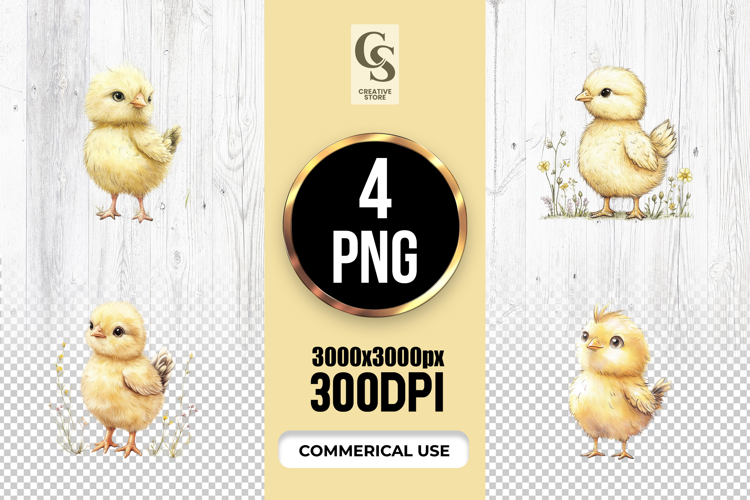 4 Cute Baby Chick Watercolor Clipart Sublimation PNG Files Perfect for Greeting Cards, Invitations, Junk Journal, Party Decor, Scrapbooking and many other craft projects.