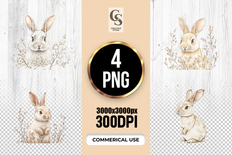 4 Cute Bunny with Flowers Watercolor Clipart Sublimation PNG Files Perfect for Greeting Cards, Invitations, Junk Journal, Party Decor, Scrapbooking and many other craft projects.