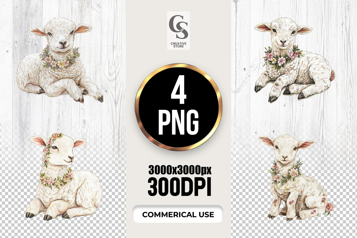 4 Cute Lamb with Flowers Watercolor Clipart Sublimation PNG Files Perfect for Greeting Cards, Invitations, Junk Journal, Party Decor, Scrapbooking and many other craft projects.