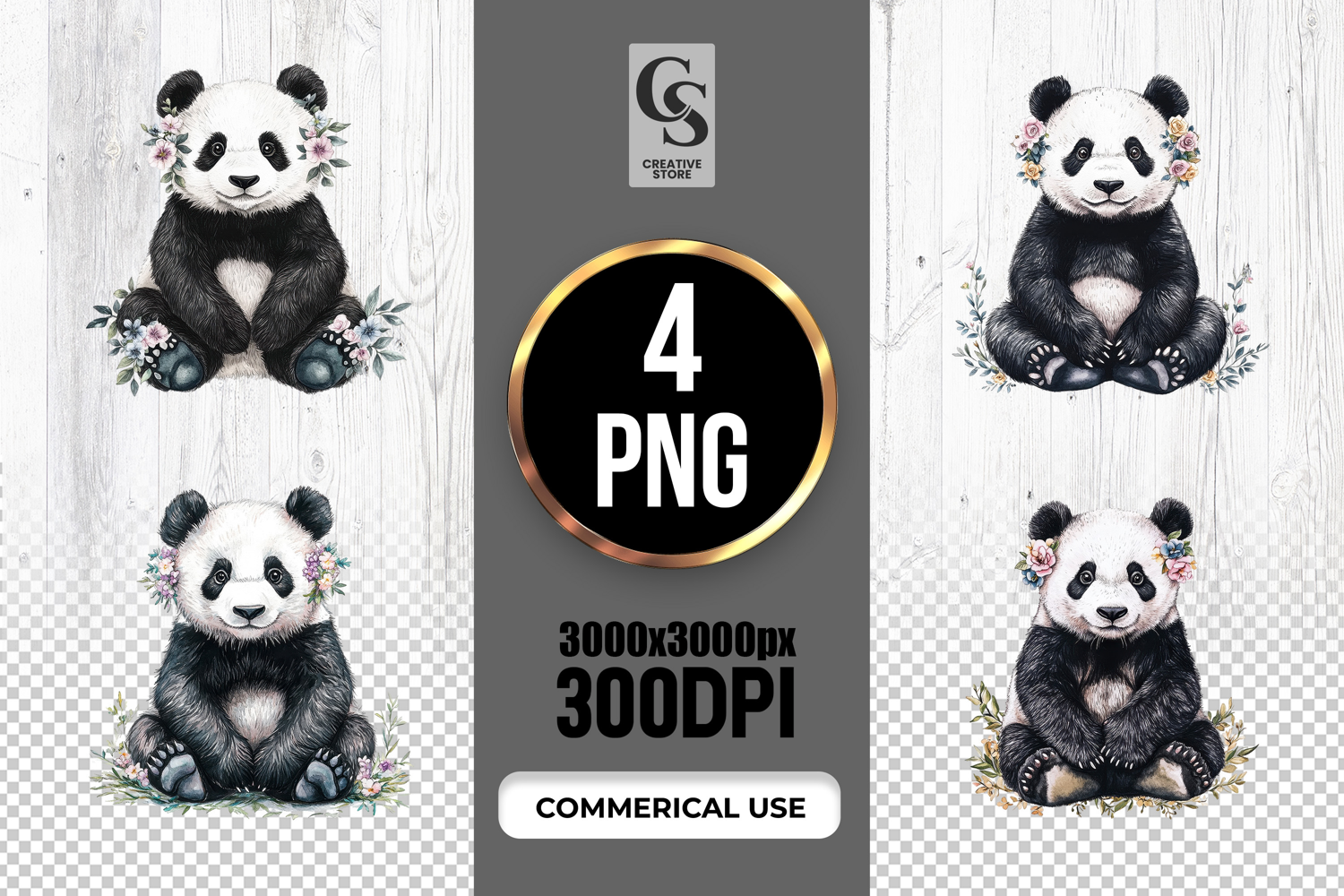 4 Cute Watercolor Panda Clipart Sublimation PNG Files Perfect for Greeting Cards, Invitations, Junk Journal, Party Decor, Scrapbooking and many other craft projects.