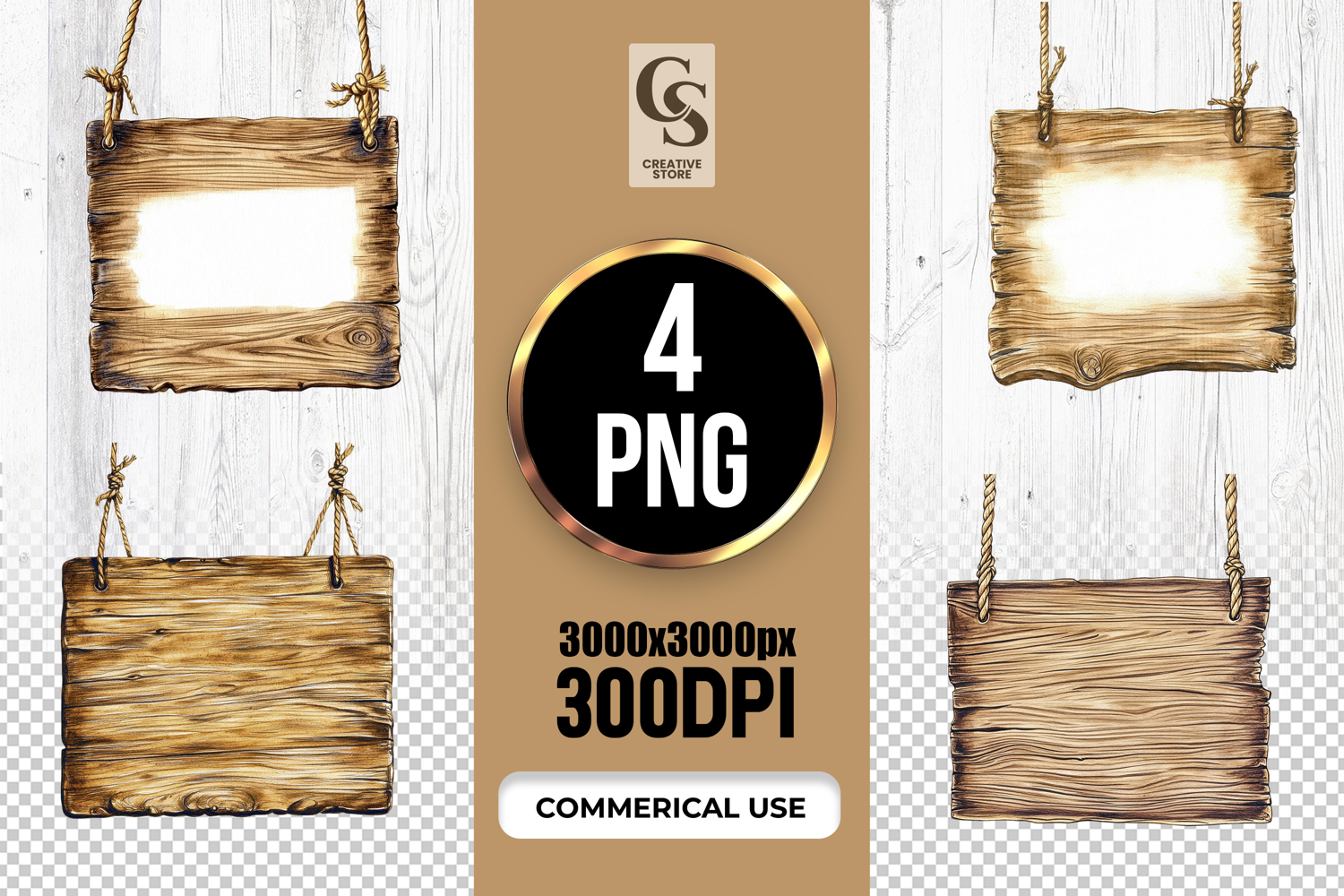 4 Rustic Wooden Sign Clipart Sublimation PNG Files Perfect for Greeting Cards, Invitations, Junk Journal, Party Decor, Scrapbooking and many other craft projects.