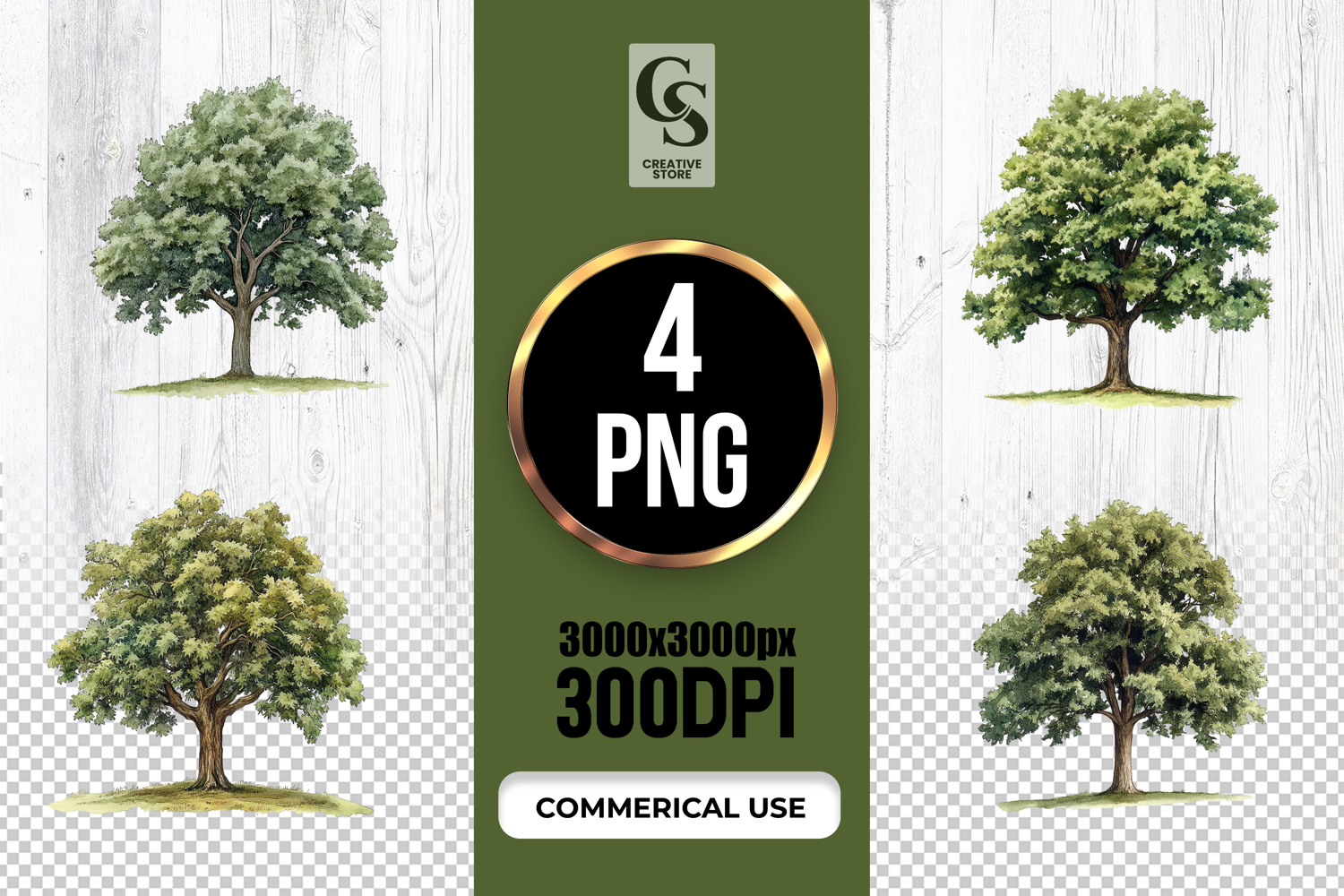4 Watercolor Tree Illustration Clipart Sublimation PNG Files Perfect for Greeting Cards, Invitations, Junk Journal, Party Decor, Scrapbooking and many other craft projects.
