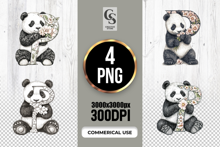 4 Floral Panda Alphabet Illustration Clipart Sublimation PNG Files Perfect for Greeting Cards, Invitations, Junk Journal, Party Decor, Scrapbooking and many other craft projects.