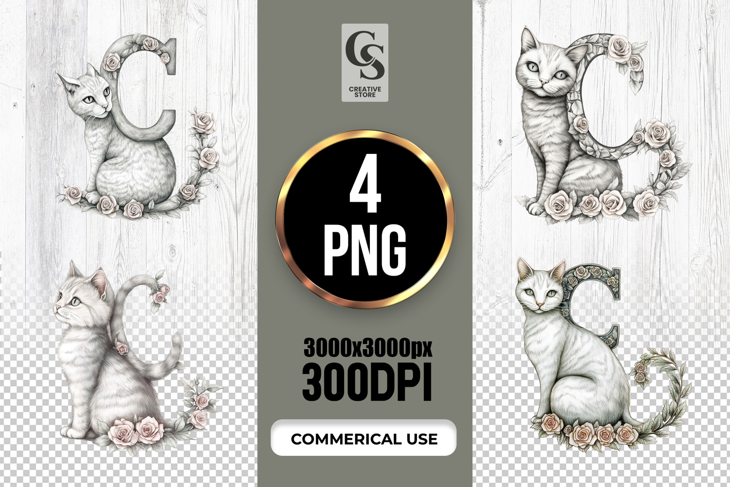 4 Floral Cat Alphabet Letter C Clipart Sublimation PNG Files Perfect for Greeting Cards, Invitations, Junk Journal, Party Decor, Scrapbooking and many other craft projects.