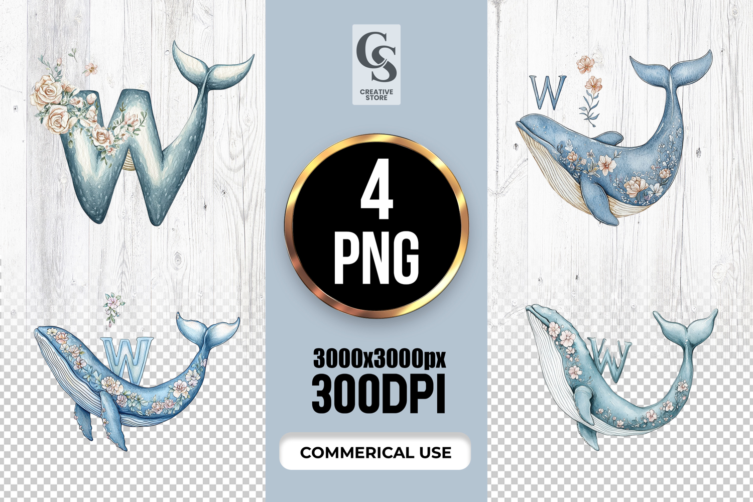 4 Floral Whale Alphabet Letter W Clipart Sublimation PNG Files Perfect for Greeting Cards, Invitations, Junk Journal, Party Decor, Scrapbooking and many other craft projects.