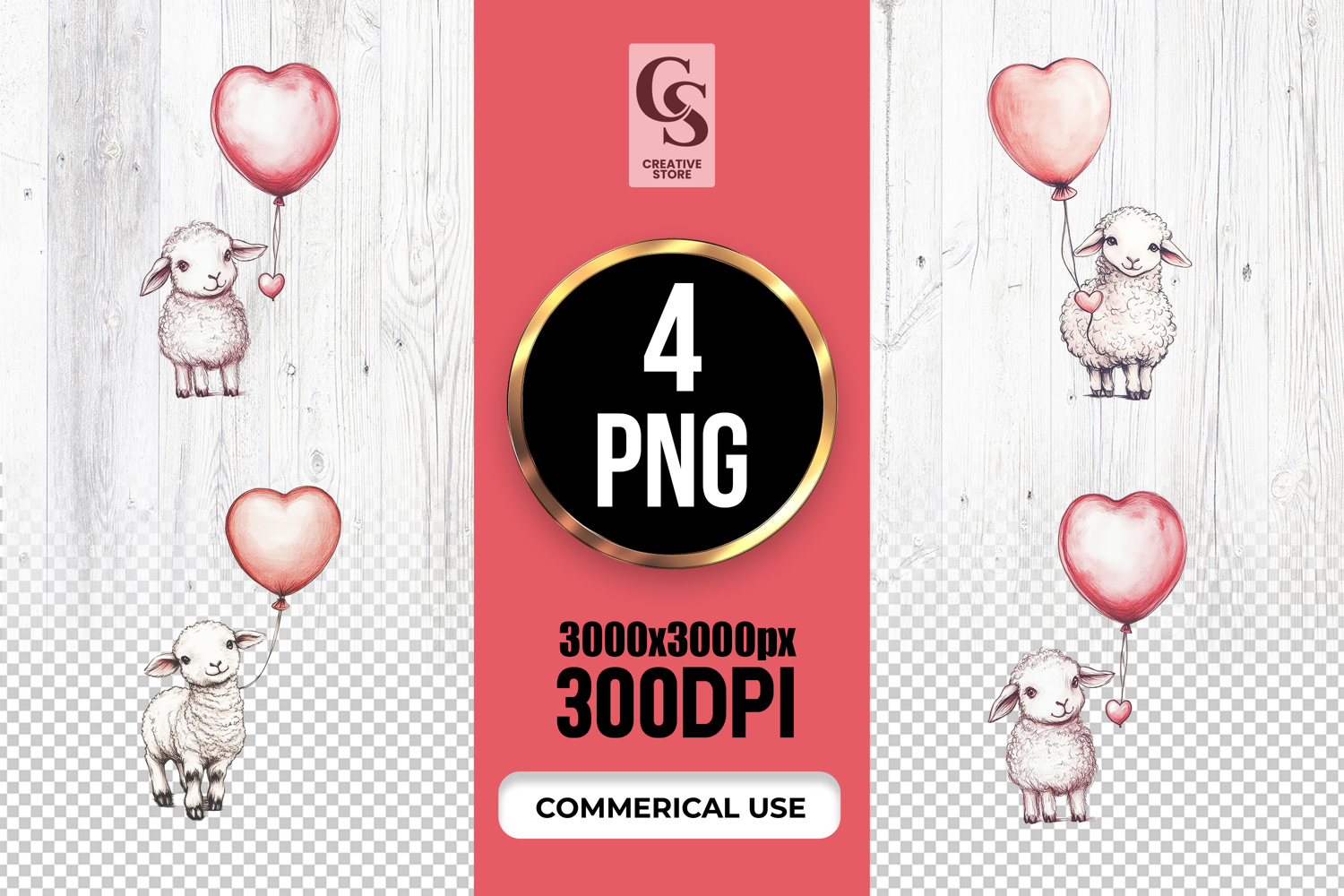 4 Cute Lamb With Heart Balloon Illustration Clipart PNG Files Perfect for Greeting Cards, Invitations, Junk Journal, Party Decor, Scrapbooking and many other craft projects.