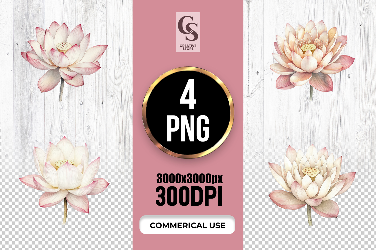 4 Pink Lotus Flower Botanical Illustration Clipart PNG Files Perfect for Greeting Cards, Invitations, Junk Journal, Party Decor, Scrapbooking and many other craft projects.