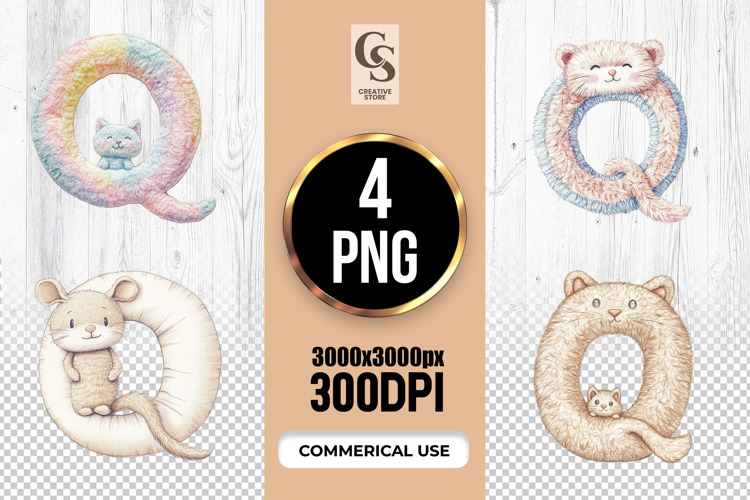 4 Cute Animal Letter Q Watercolor Alphabet Clipart PNG Files Perfect for Greeting Cards, Invitations, Junk Journal, Party Decor, Scrapbooking and many other craft projects.