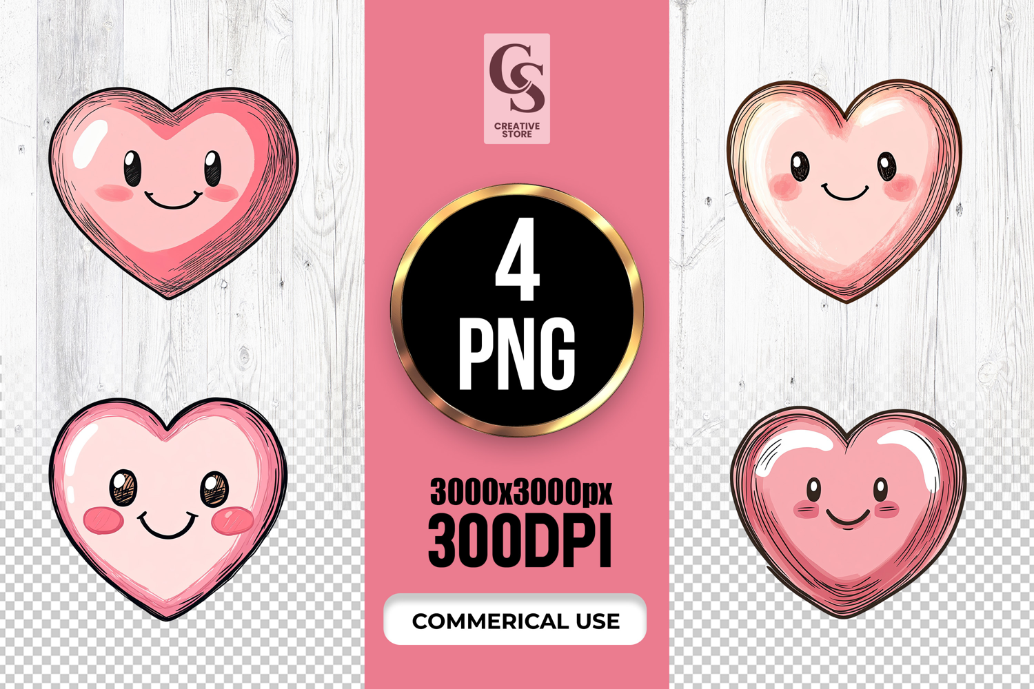 4 Cute Blush Heart Faces Clipart Sublimation PNG Files Perfect for Greeting Cards, Invitations, Junk Journal, Party Decor, Scrapbooking and many other craft projects.