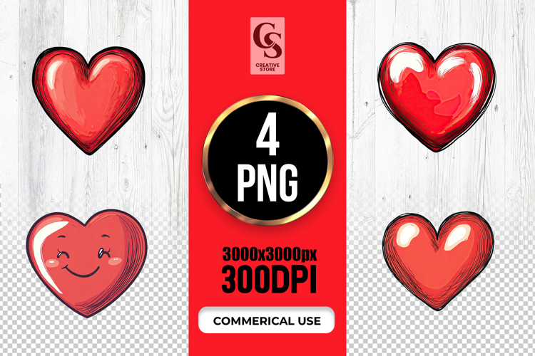 4 Red Glossy Heart Illustrations Clipart Sublimation PNG Files Perfect for Greeting Cards, Invitations, Junk Journal, Party Decor, Scrapbooking and many other craft projects.