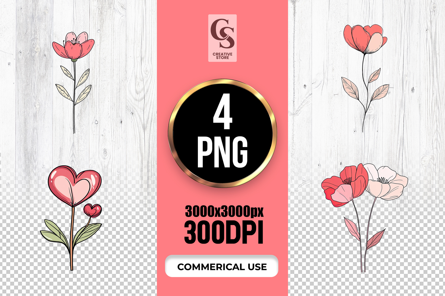 4 Minimal Floral Stems Illustration Clipart Sublimation PNG Files Perfect for Greeting Cards, Invitations, Junk Journal, Party Decor, Scrapbooking and many other craft projects.