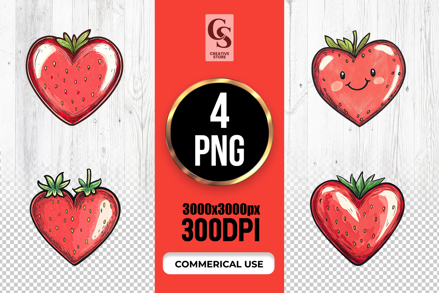 4 Heart Shaped Strawberry Illustrations Clipart Sublimation PNG Files Perfect for Greeting Cards, Invitations, Junk Journal, Party Decor, Scrapbooking and many other craft projects.