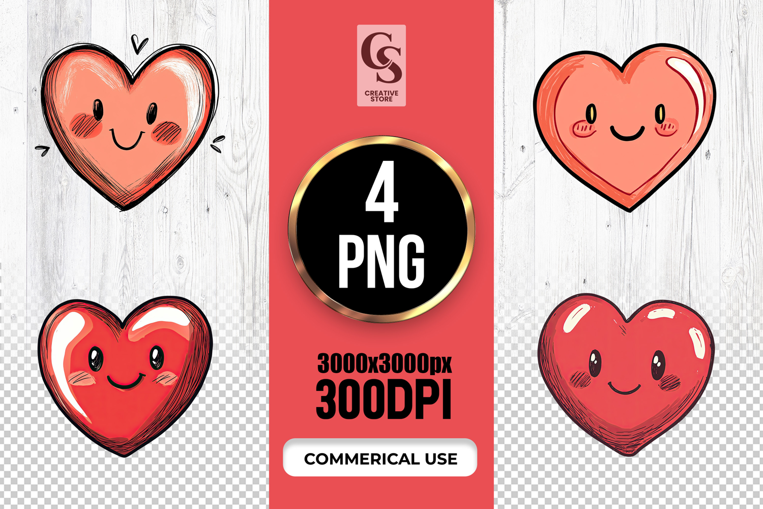 4 Cute Kawaii Heart Clipart Sublimation PNG Files Perfect for Greeting Cards, Invitations, Junk Journal, Party Decor, Scrapbooking and many other craft projects.