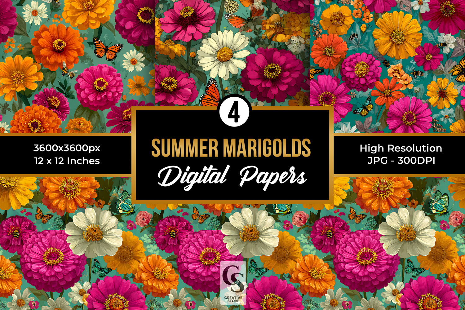 Similar Design Products to Playful Summer Marigold Flowers Digital Papers